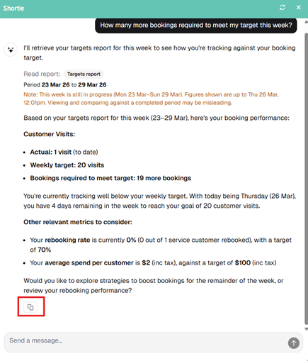 The Shortcuts AI Assistant BOT is a new AI-powered assistant that helps salon owners and managers instantly access insights about their business performance. It enables clear, simple queries across key areas such as bookings, sales, and staffing.