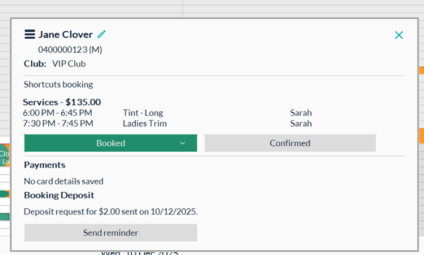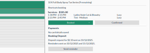 Deposit requests can only be triggered manually by you or your team from the appointment book Touch Tip, so nothing will happen without your say.