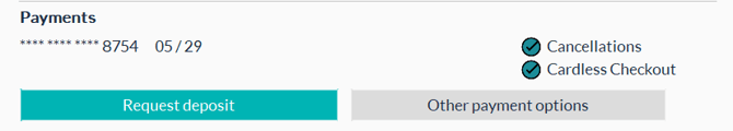 Other payments will show Cancellations and Cardless Check Out turned on they will have more request options and icon.