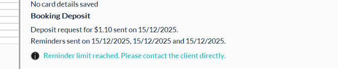 - If the client does not make payment, up to 3 reminders will be sent and it will display as all reminders sent and to contact the client in Touch Tip.
