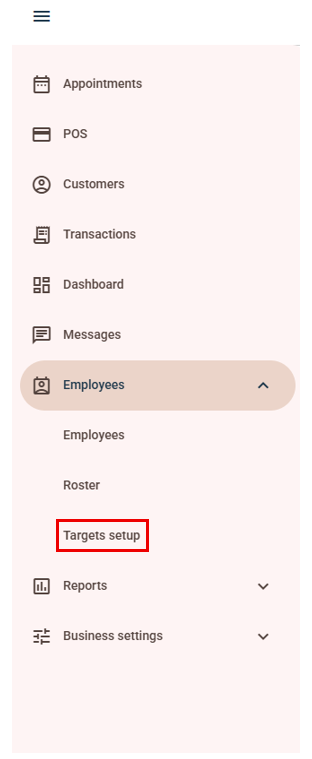 - Navigate to Targets Setup: Go to Hamburger icon (☰) > Employees > Targets Setup.