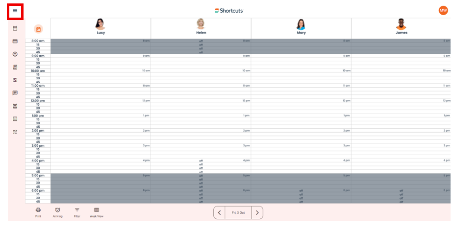 - Switch between different sites or employees.