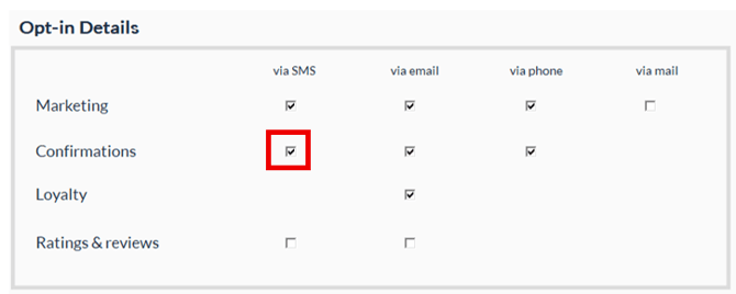 Under Opt-in Details, ensure SMS Confirmations is ticked.
