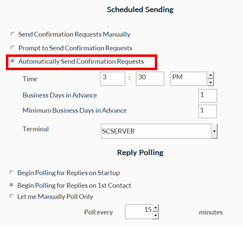 Important: Make sure Automatically Send Confirmation Requests is selected so SMS confirmations are sent automatically.