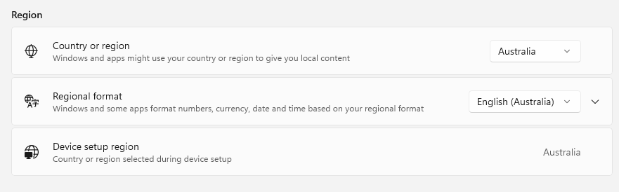 Make sure your computer’s regional settings are set to your country (e.g., Australia).